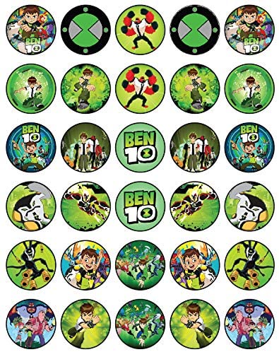 30 x Edible Cupcake Toppers Themed of Ben 10 New Design Collection of Edible Cake Decorations | Uncut Edible on Wafer Sheet