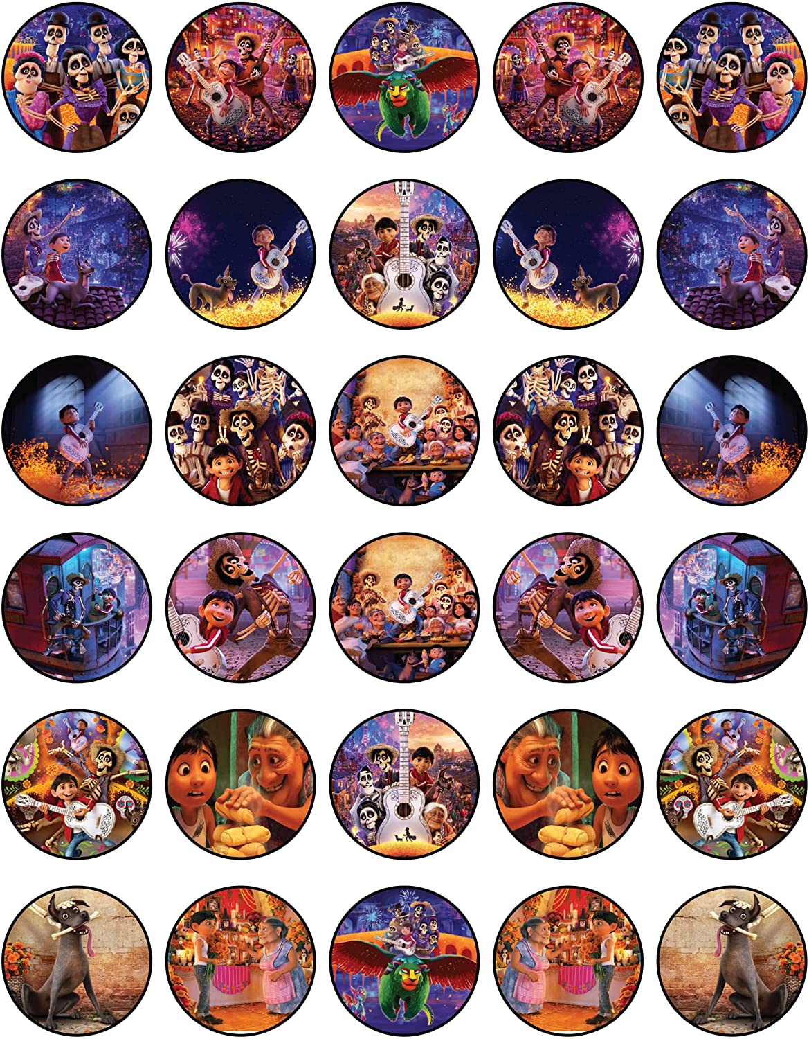 30 x Edible Cupcake Toppers Themed of Coco Collection of Edible Cake Decorations | Uncut Edible on Wafer Sheet