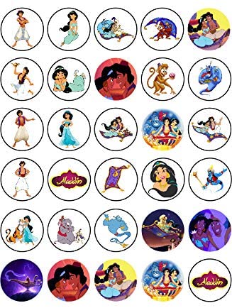 30 x Edible Cupcake Toppers u2013 Aladdin Themed Collection of Edible Cake Decorations | Uncut Edible on Wafer Sheet