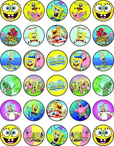 30 x Edible Cupcake Toppers u2013 Spongebob Themed Collection of Edible Cake Decorations | Uncut Edible on Wafer Sheet