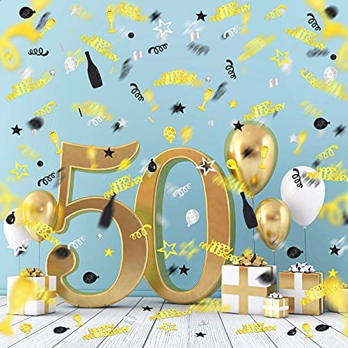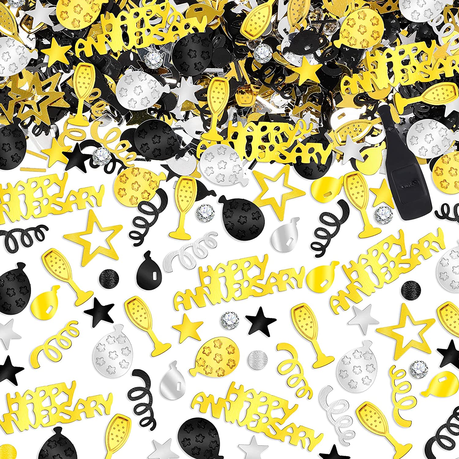 3000 Pieces Happy Anniversary Confetti Anniversary Party Decoration Confetti Metallic Foil Table Decorations Scatter Confetti for Anniversary Party DIY Arts Crafting Supplies (Gold, Silver, Black)