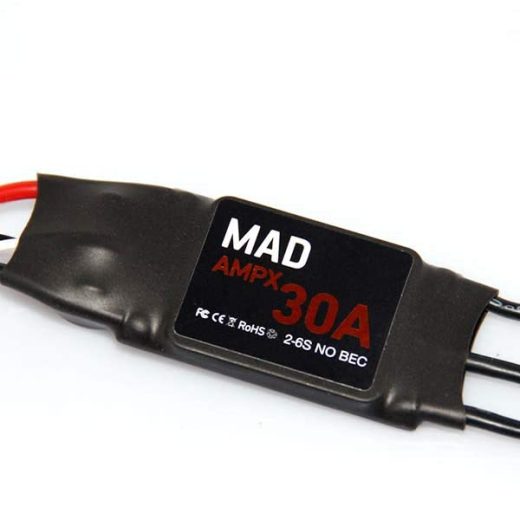 Specifications Model: AMPX 30A Max. Continuous Current: 30A -40A Peak Current (10 secs.}: 50A-60A BEC: not available LiPo: 2-6S Programmable Timing: Medium/High Weight: 22 g Size (L x W x H): 68.0 x 25.0 x 7.0 [mm] Throttle signal is PWM. cable length:75cm