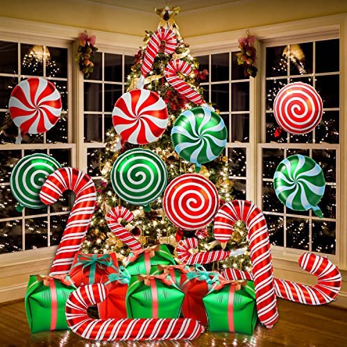 SWEET CHRISTMAS DECORATION: Our candy balloons kit adopt classic Christmas elements, such as gift box, cane, sweet candy. These foil balloons of vi…