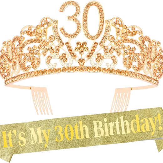 30th Birthday Gifts for Women: one golden 30th birthday crown with 30 and one golden 30th birthday sash with it’s my 30th birthday, suitable for 30…