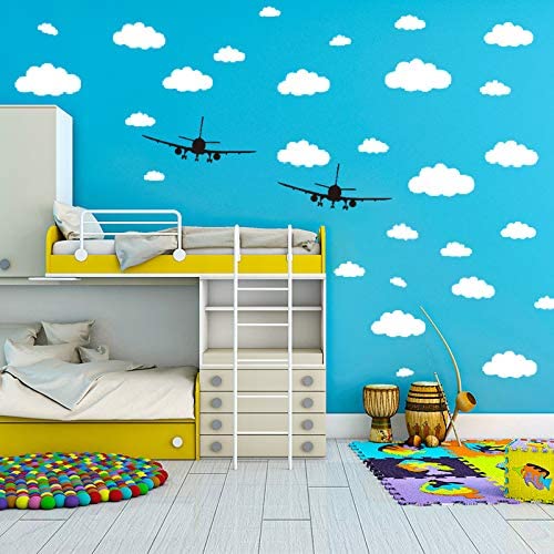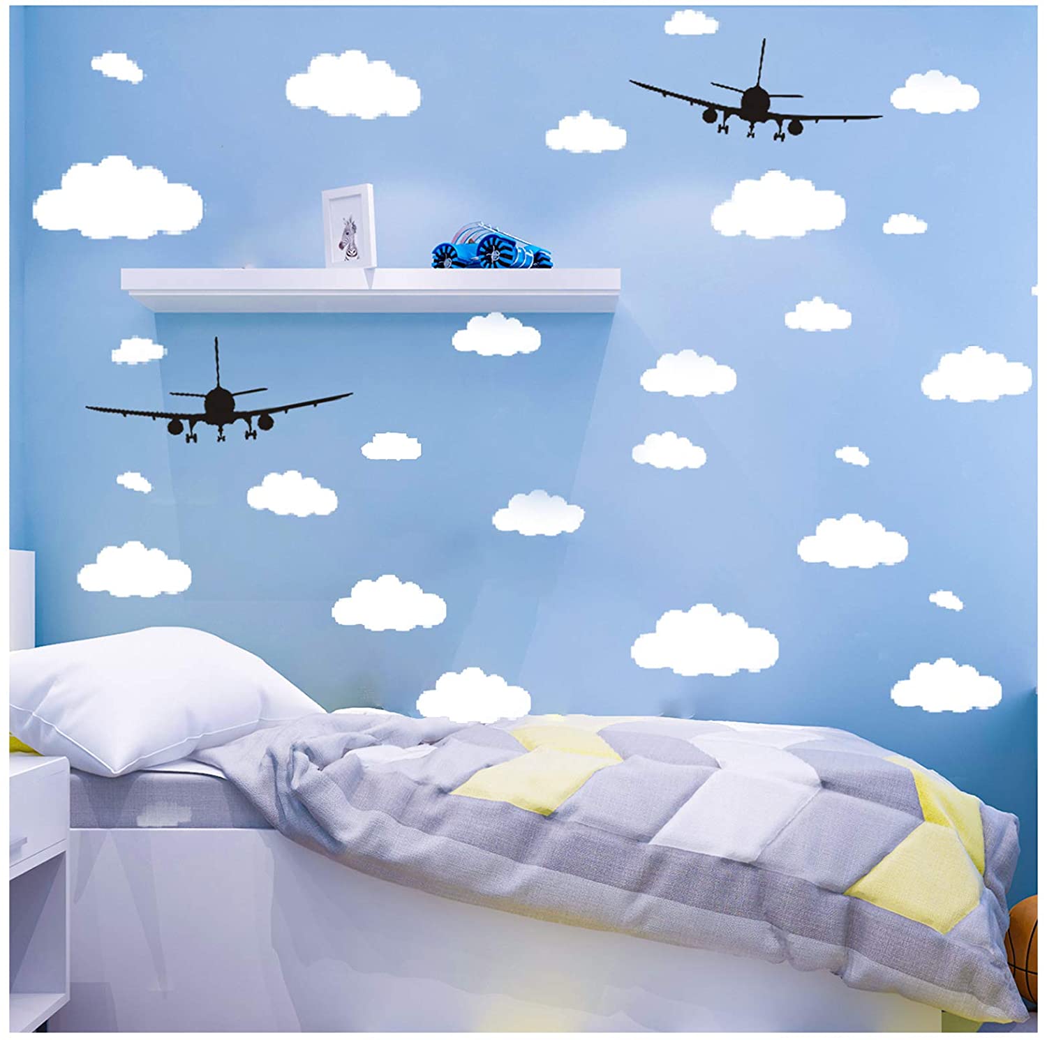 31pc Cloud Wall Stickers and 2pc Black Airplanes Decor Wall Decals for Nursery Kids Room Decor, CUNYA Vinyl Removable Clouds Wall Art Stickers Home Decoration (Mix Size 4-10 inch )
