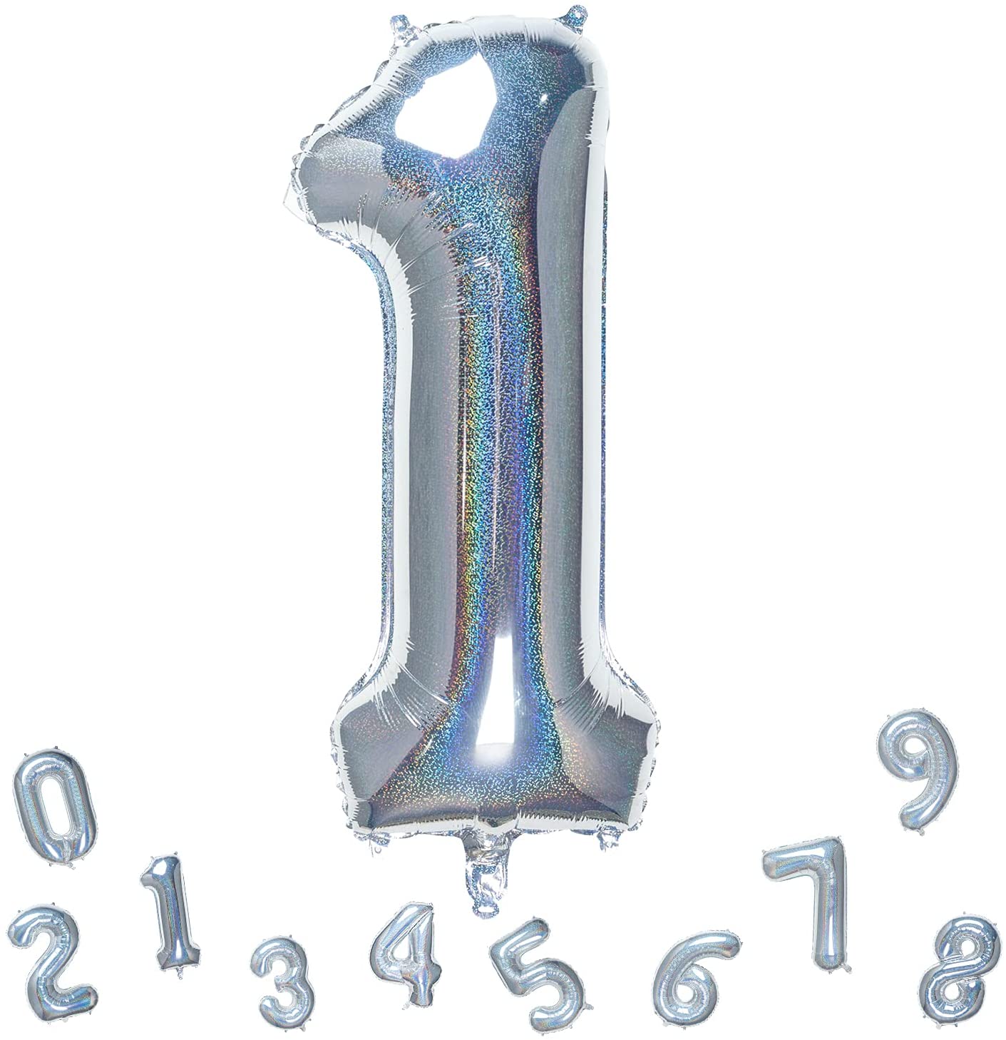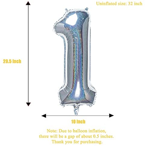 32 Inch Laser Silver Number 1 Balloons Foil Ballon Digital Birthday Party Decoration Supplies (Laser Silver Number 1 Balloon)