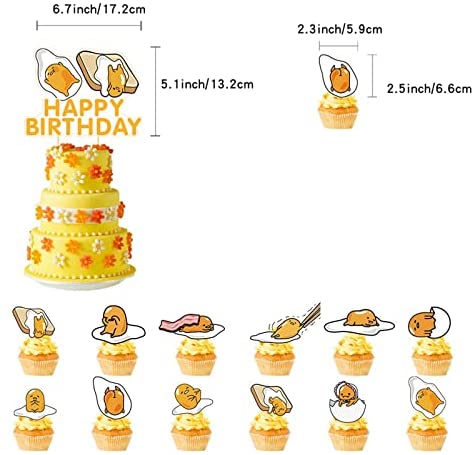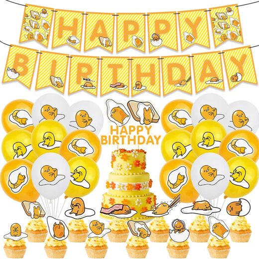 32Pcs Gudetama Birthday Party Supplies Party Favors Set For Kids Gudetama Cake Topper Cupcake Toppers Banner Balloons For Gudetama Birthday Party Decorations
