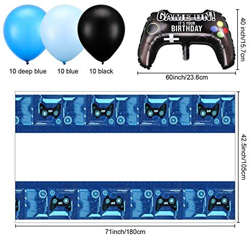 Package includes: you will receive 1 piece backdrop (5.9 x 3.7 ft), 30 pieces of latex balloons (dark blue, black, blue), 1 piece video game table …