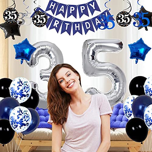 35th Birthday Decorations for Men Women – Happy 35th Birthday Party Decorations Blue Birthday Party Supplies with HAPPY BIRTHDAY Banner-35 Years Old Party Decorations Kit 35th Bday Decorations for Men