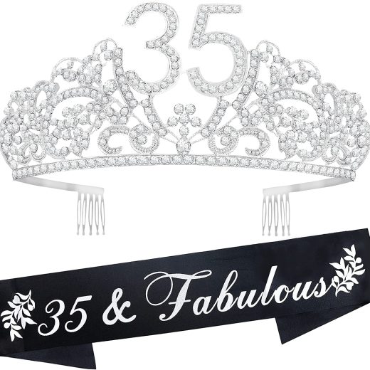 metal Imported 35 Year Old Women Birthday Decorations, 35th Birthday Crown for Female, 35th Birthday Party Sash, 35th Birthday Ideas, Crowns for Wo…