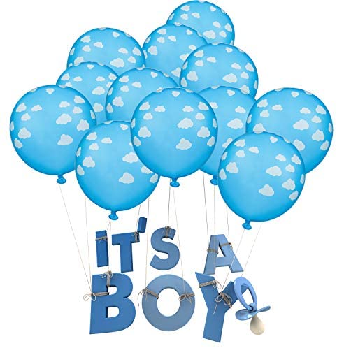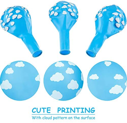 36 Pieces Blue Cloud Latex Balloons Mid Blue with Clouds Matte Balloons 12 Inches Cloud Print Light Blue Balloons for Baby Shower Boys Girls Birthday Party Supplies