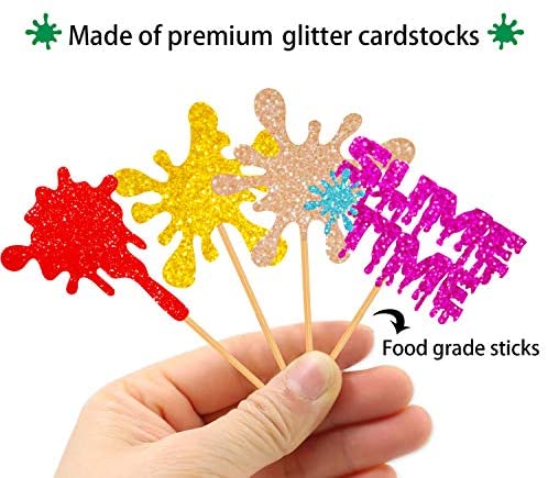 36 Pieces Glitter Slime Cupcake Toppers Colorful Painted Slime Cupcake Decorations for Slime Themed Birthday Party Art Themed Baby Shower Party Sup…