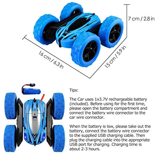 360° Spins Flips Stunt Racing Car – 2.4GHz Remote Control High Speed 4WD Double Sided 360 Degree Rolling Rotation with Lights, Best Gift & Toys for Kids Boys Over 3 4 5 6 Years Old (Blue)