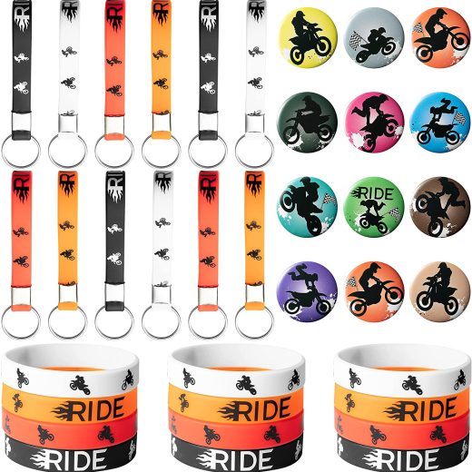 [ Dirt Bike Themed Party Kit]: This colorful Dirty Bike themed party supplies is sure to satisfy all your expectations for a fun party. [ Combination Packages]: No need to worry about the birthday party decoration presents, and can give the children an unforgettable birthday party, which can impress family and friends.Our party kit packed in a bag which contains all of gifts that you will need, save your time and energy. [ Colorful & Good Quality ]: All presents are carefully collected for you which is premium quality, colorful and adorable. All are safe and non-toxic, and can be used with peace of mind. [ Unique Design ]: This 36pcs birthday party supplies creates a spectacular party for you and your children. Each product is carefully selected for you, in order to make you and your children have a happy and memorable memory. Can let you party decoration gifts to family and friends easily and gracefully. [What You Get ]: Dirty Bike Keychain*12,Dirty Bike Wristband*12,Dirty Bike Badge*12