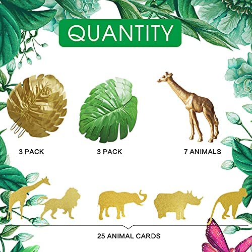 Material – Made of high quality durable ABS materials which is Eco-Friendly, BPA Free. Applicable scene – Perfect for safari animal themed parties, celebrate kids party with a jungle animal theme. From wild-one birthday parties for kids, cupcake topper, baby shower, to funky wedding celebrations, thats very great decoration for your party. Benefit – Make your Jungle Baby Shower decoration perfect. Created with a premium card stock, these Safari Baby Shower Decorations are sure to offer the right amount of sparkle for your event! Package included – 7 x gold jungle animals, 3 x gold palm leaves, 3 x green palm leaves, 5 x 5 kinds of golden animals insert cards Total safety – BPA free and eco-friendly. Tested to be safe for kids.
