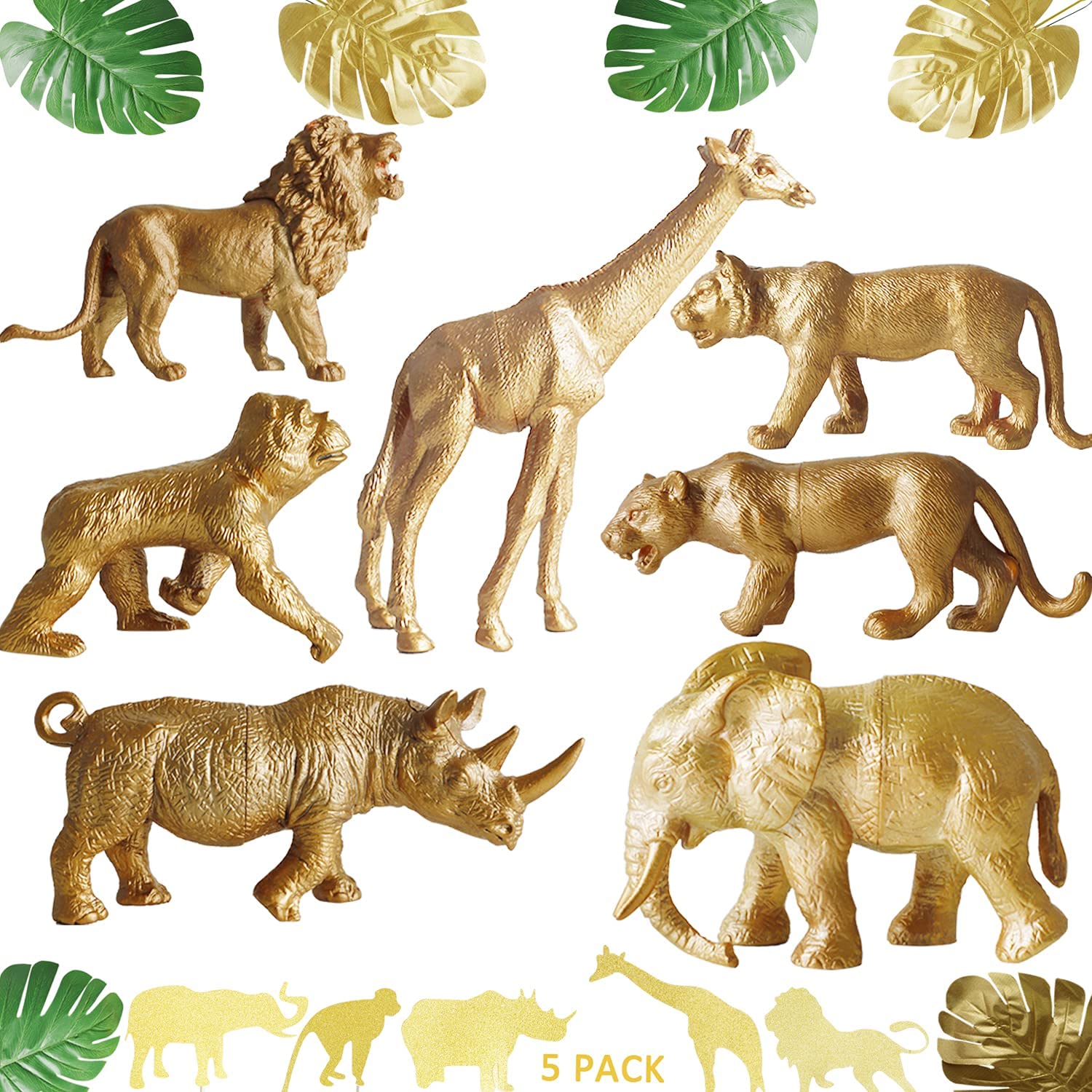38 PCS Gold Safari Animals Figurines Toys Jungle Animals Cake Decoration Jungle Party, Wild Plastic Animals for Jungle Safari Wild Animals Birthday Baby Shower Party Decoration Centerpiece Supplies