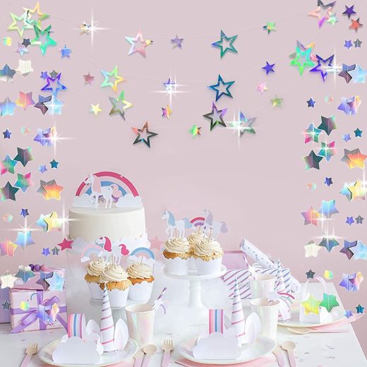 39Ft Glitter Star Paper Garland Banner Hanging Decorations Bling iridescent Twinkle Star Garland Streamer Kit for Bridal Shower Wedding Baby Shower Christmas Birthday Prom Graduation Party Supplies