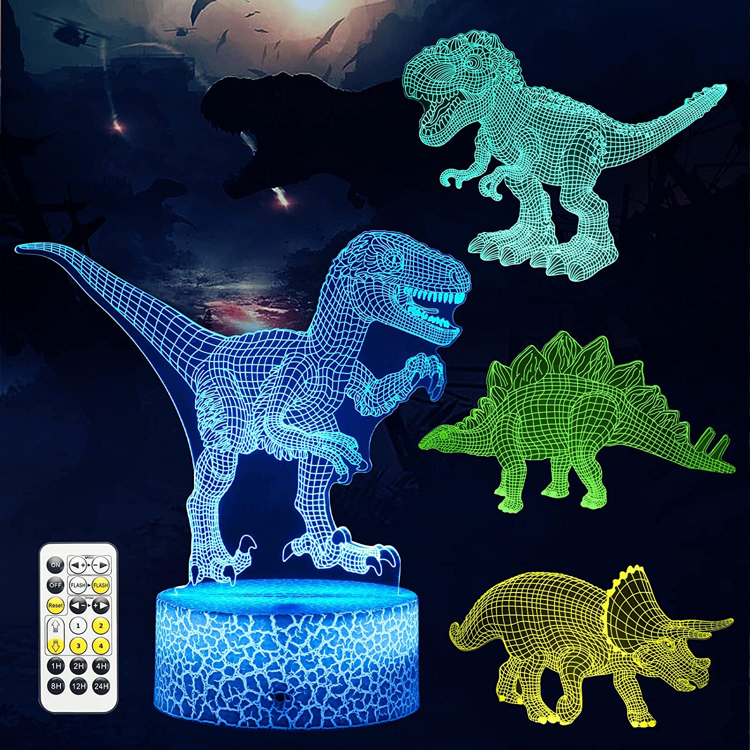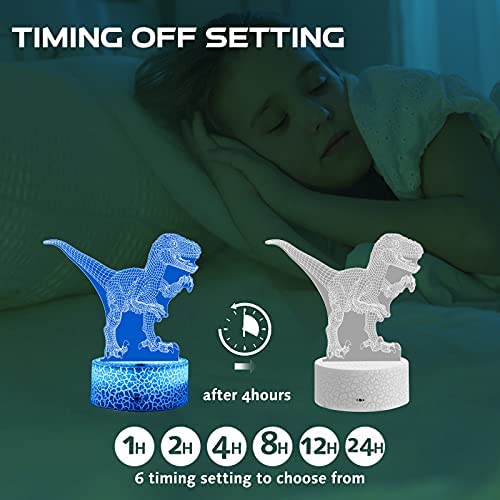 3D Illusion Dinosaur Night Light for Boys, Dimmable LED Nightlight with Timing Remote Control and 7 Color Changing Decor Lamp, Birthday Gifts Dinosaur Toys for Kids Boys Girls 3-5 5-7 8-12