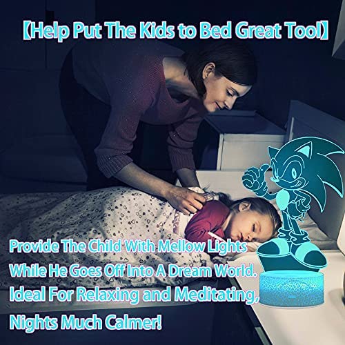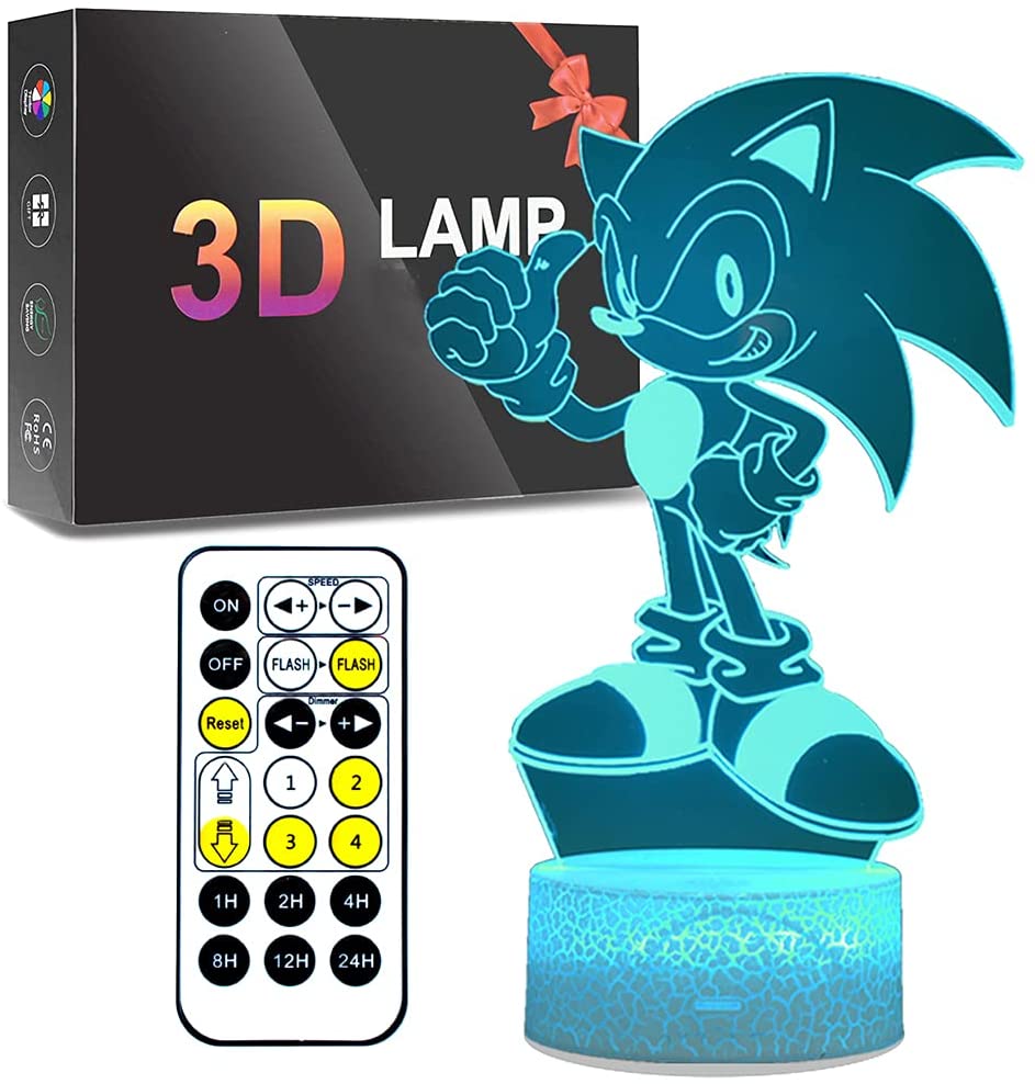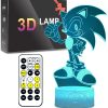 3D LED Illusion Night Light for Kid, with Remote Control Kids Bedside Lamp, Sonic The Hedgehog Design, Boys Bedroom Decor, is Perfect Great Birthday Xmas Gift for Boys and Girls