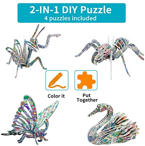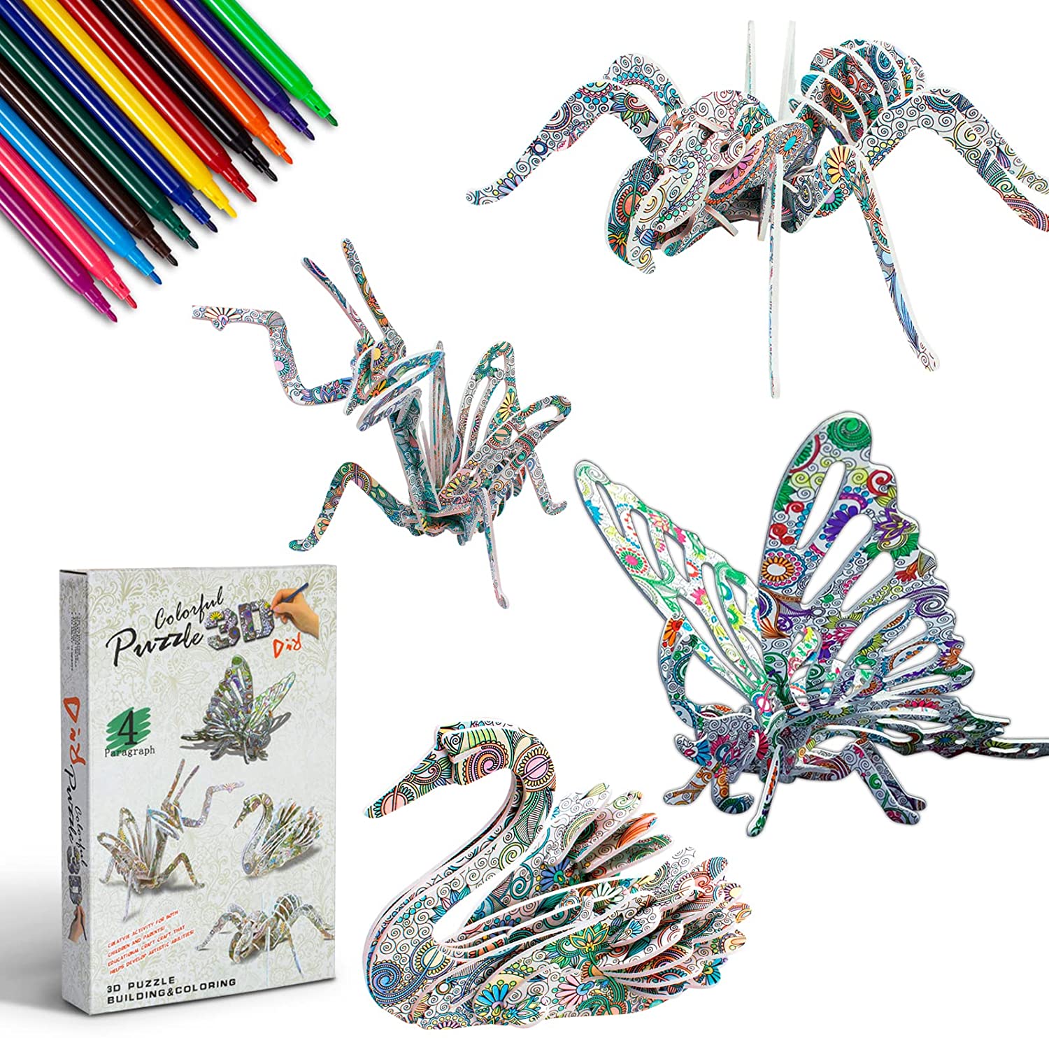 3D Puzzle Coloring Puzzle Set 4 Animals Puzzles with Pen DIY Arts & Crafts for Girls Boys