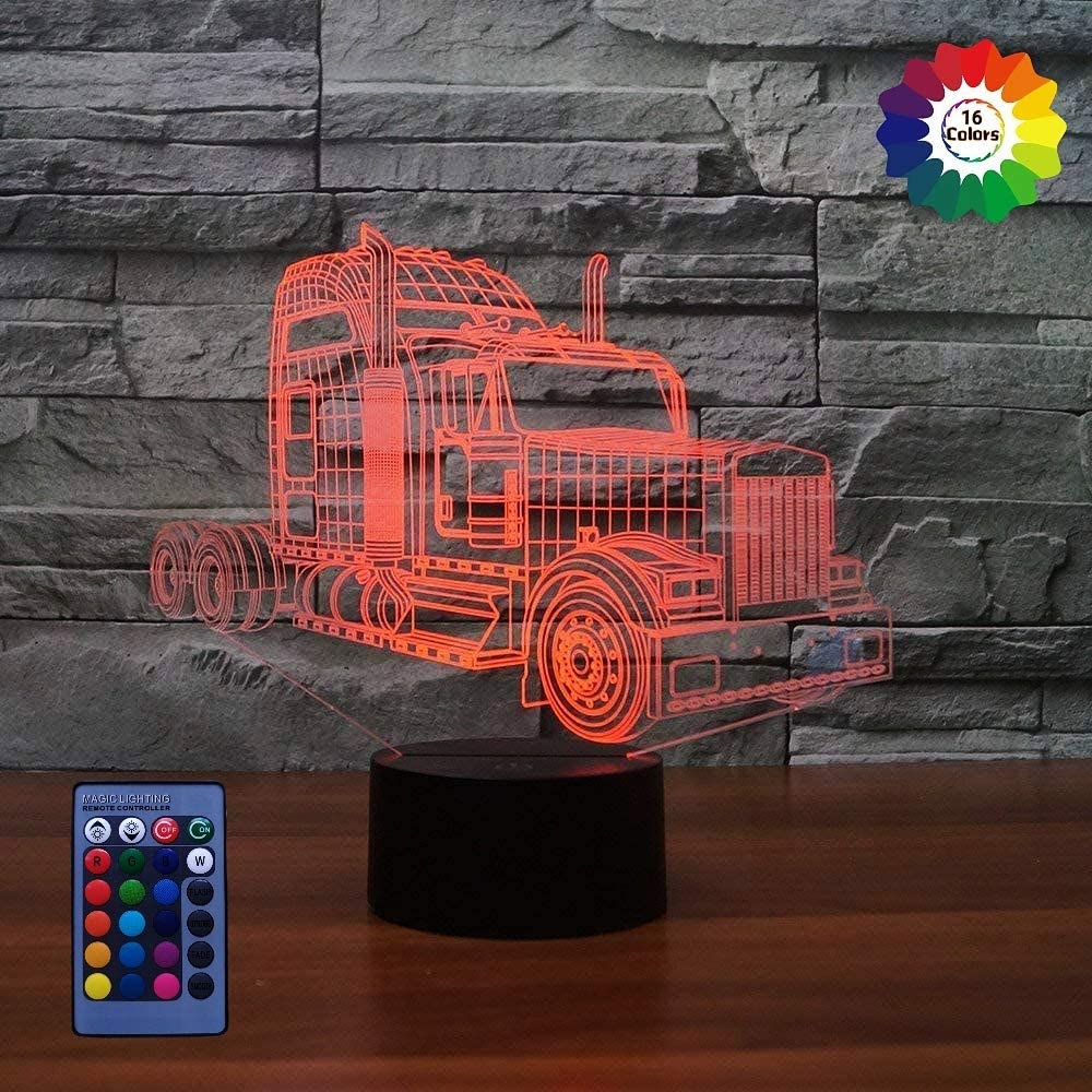 3D Truck Night Light Illusion Lamp 7/16 Color Change Remote Control Touch Switch USB Power Table Gift Kids Toys Christmas Decor Valentines Gift