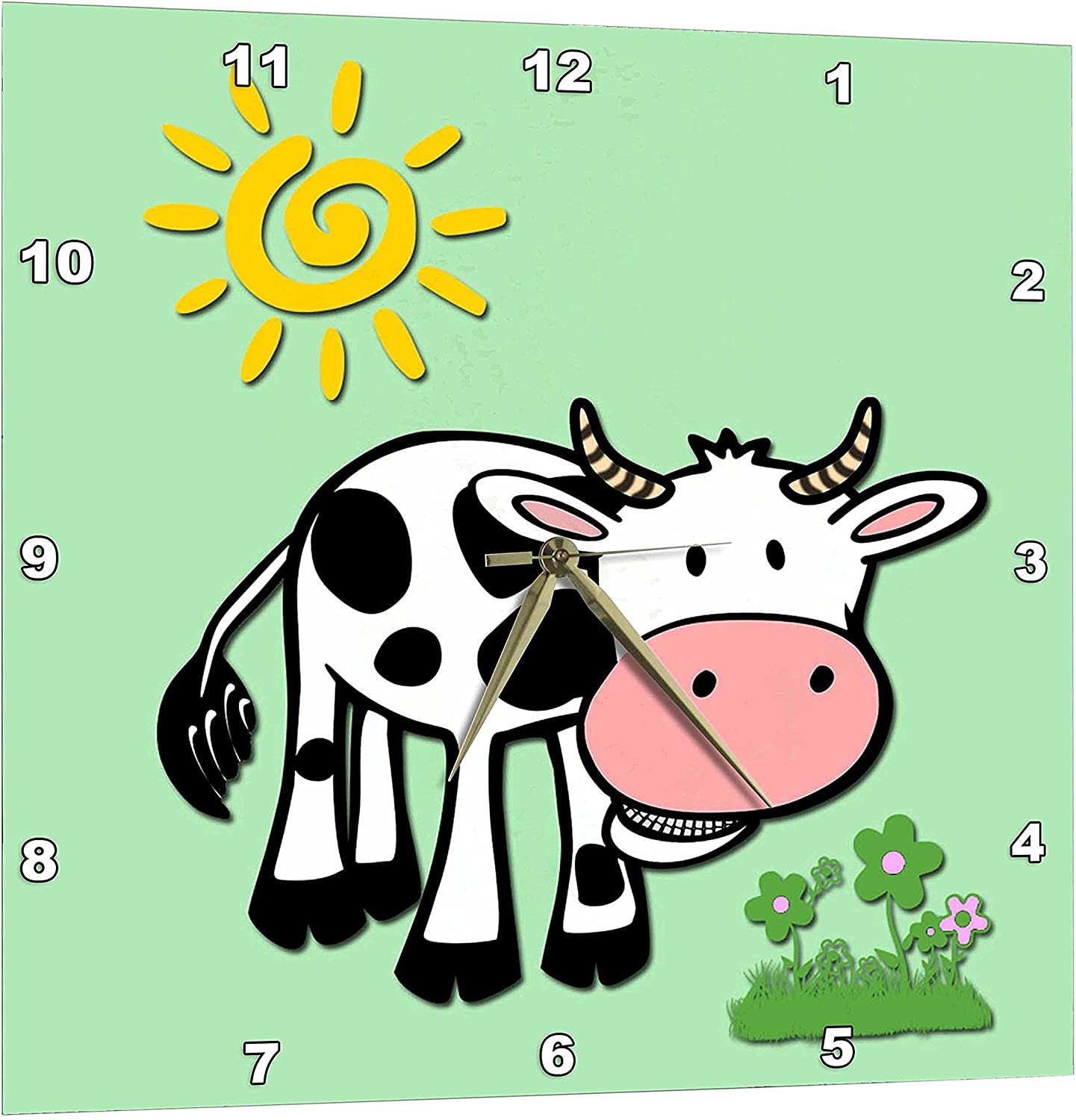 3dRose DPP_218370_3 Cute Cow Light Lime Kids Decor Popular Print Wall Clock, 15