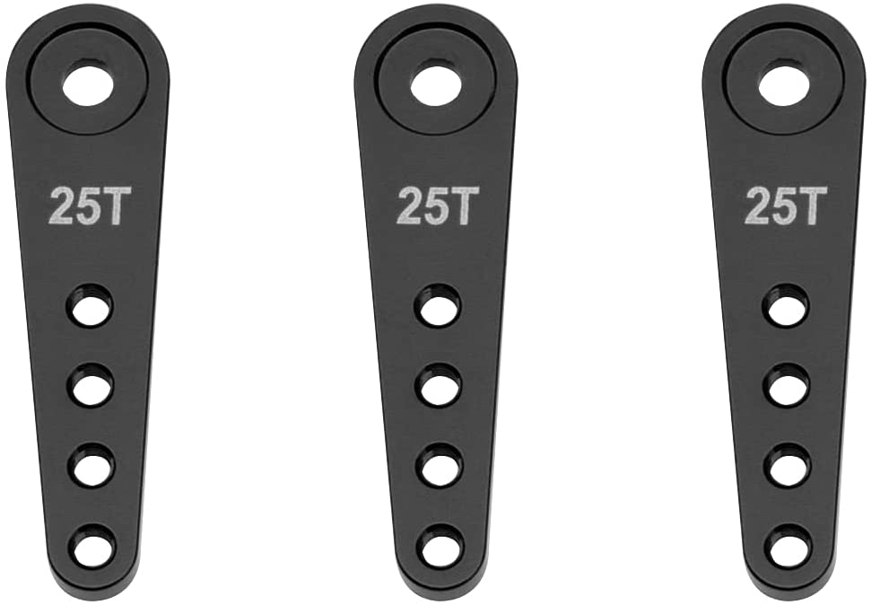 Description: 25 Thread Spline & M2.5 thread & 4 clamp system to adjustable. Compatible with Mostly Standard Servo Motors,Such as Futaba, Power HD,Axial,Savox ,Xcore, HSP, TowerPro MG JX DS3218MG Servo Motors and So on.(Not compatible with Hitec and JR Servos) Compatible with Traxxas Axial Tamiya HPI HSP Wltoys Axial SCX10 most top s RC vehicle and others rc car,truck.Also,they can used on rc drone,plane,boat,helicopter,tank etc Easy and convenient to install and remove. Specification: Material: Aluminum Thread: M2.5 Total Length: 37mm Distance from hole center to hole center:15mm, 20mm, 25mm, 30mm Optional Color: Red, Black,Silver Weight: 1.8g/PCS Package Includes: 3 x 25T Servo Arm
