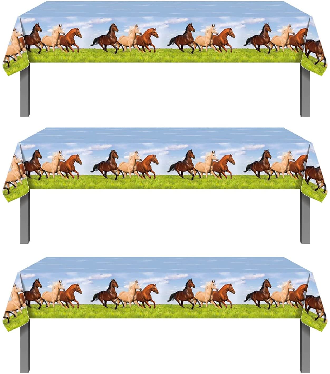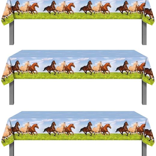 3Pcs Horse Themed Party Table Covers – Horse Racing Animal Derby Horse Baby Shower Birthday Party Decorations Favors Supplies Wall Decor Plastic Table Runner Tablecloth(86.6×52)