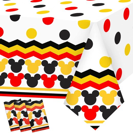 3Pcs Mouse Tablecloth Mouse Birthday Party Supplies Disposable Mouse Head Plastic Tablecloth Rectangle Polka Dots Table Cover for Kids Mouse Theme Party, Baby Shower Party Decorations