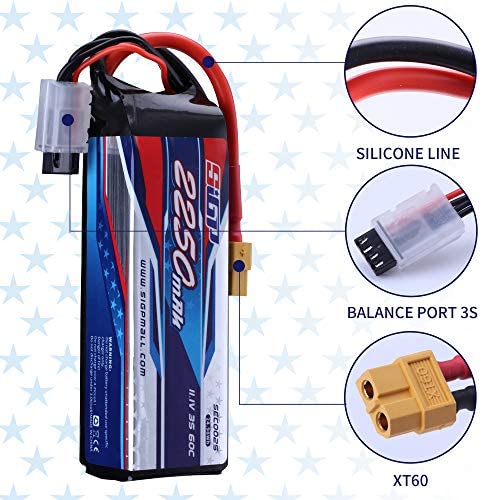 3S 11.1V Lipo Battery 2250mAh 60C Soft Pack with XT60 Plug for RC Airplane Quadcopter Helicopter Drone FPV Racing Hobby