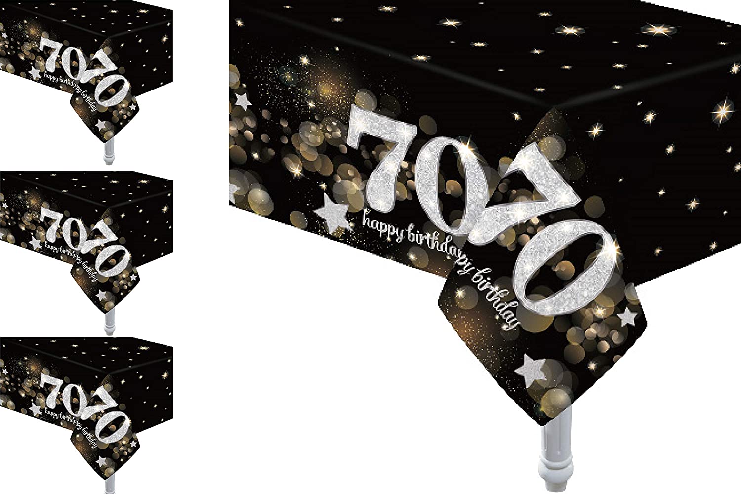 4 Pack 70th Birthday Table Cover / 70th Birthday Theme Tablecloth Party Supplies