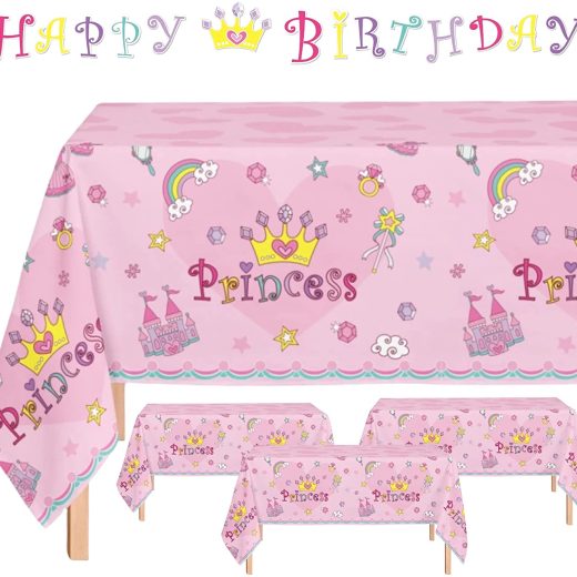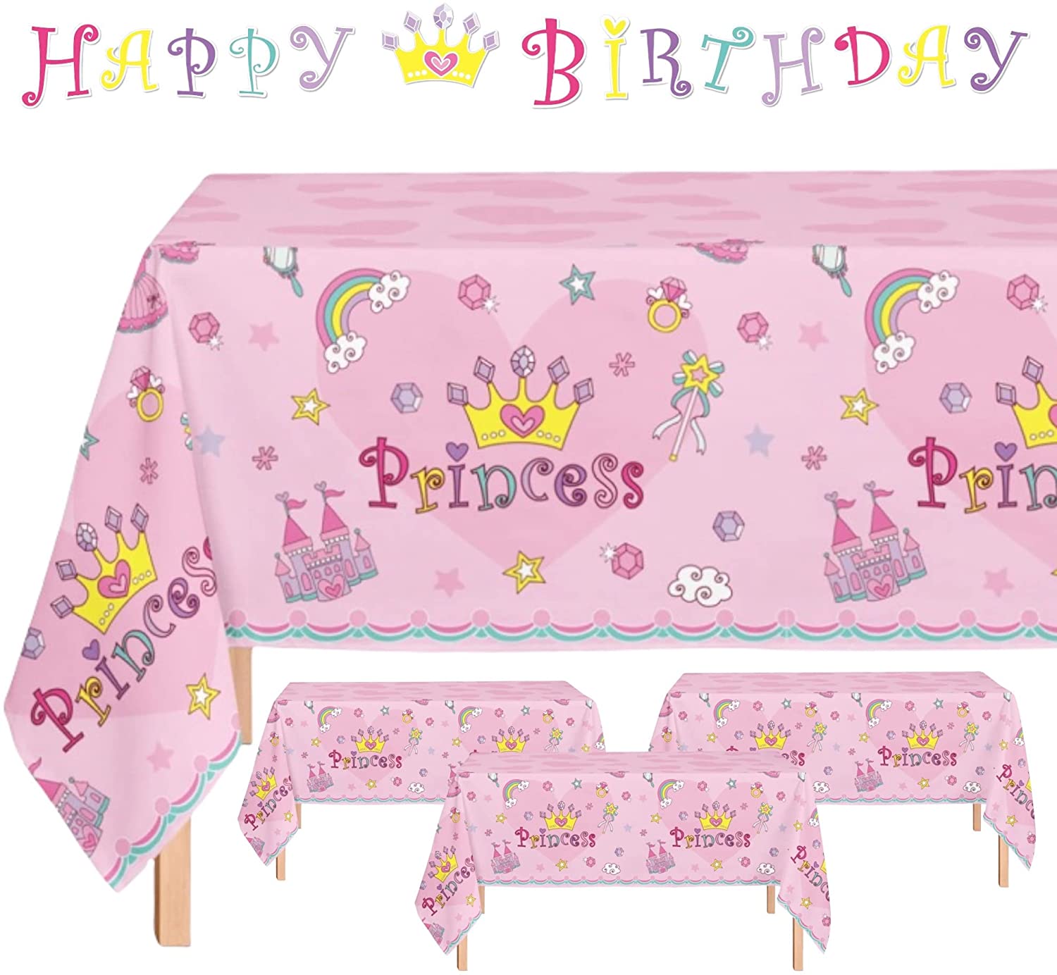 4 Pack Princess Birthday Party Table Cover Ideal for Princess Theme Birthday Party Decorations Includes 1 Happy Birthday Princess Theme Banner