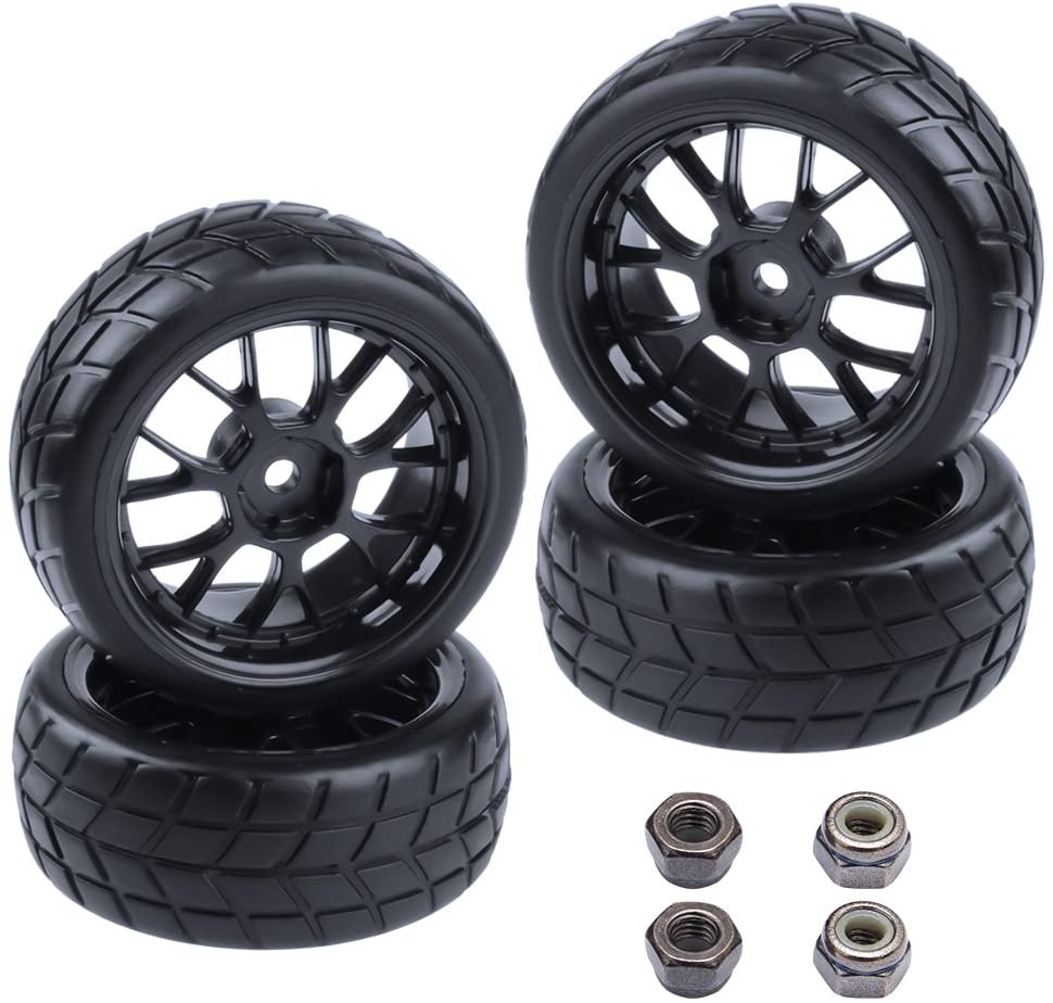 4-Pack RC Tires & Wheel Rims 12mm Hex Hub Y Shape w/Foam Inserts for 1/10 Remote Control Car On Road Touring
