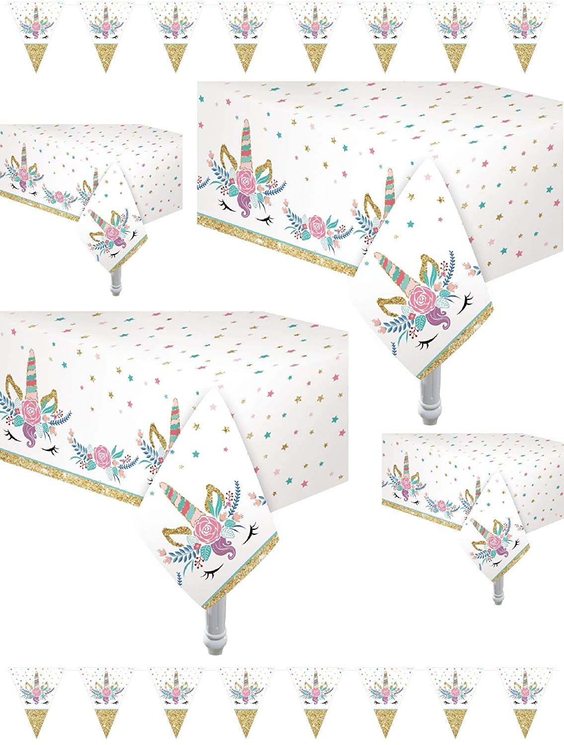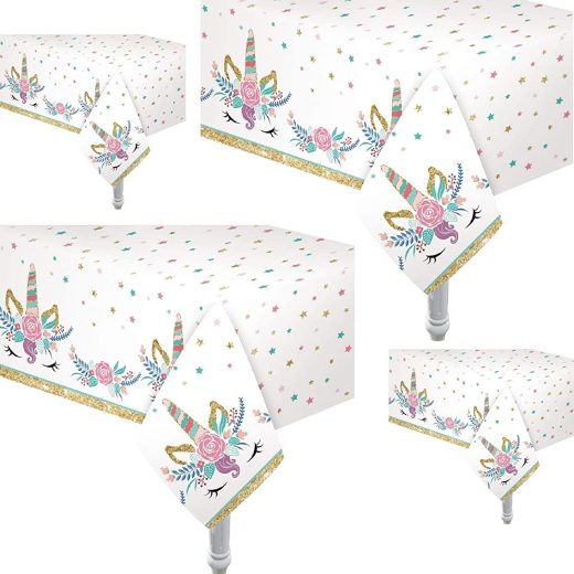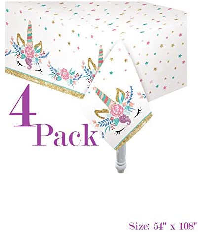 4 Pack Table Cover | Size: 54 x 108 2 Pennant Banners Included Manufactured to the Highest Quality Available All Purpose : For parties, Paint arts and crafts with your little ones and their friends, or to catch messy spills Ideal for Unicorn theme party