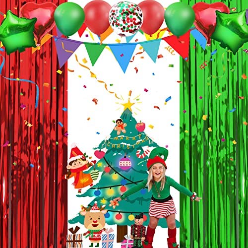 4 Packs Foil Curtains Metallic Fringe Curtains Shimmer Curtain for Christmas Party Decorations (Green and Red)