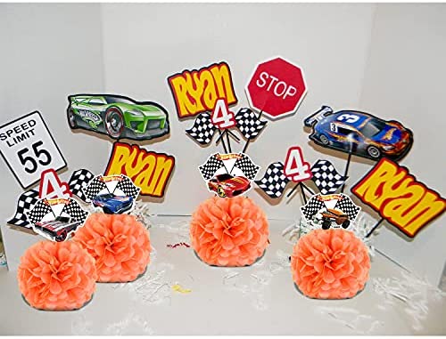 4 Party Decorations for Hot Car Centerpieces Theme Happy Birthday Table Decorations Pom Paper Flowers Favor