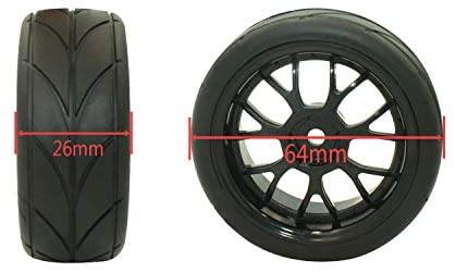 Features: Material: Tires-Rubber; Wheel Rim-Quality Plastic Tire Outside Diameter: 64 mm (2.52 in) Tire width: 26 mm (1.02 in) Accessories: 4x M4 L…