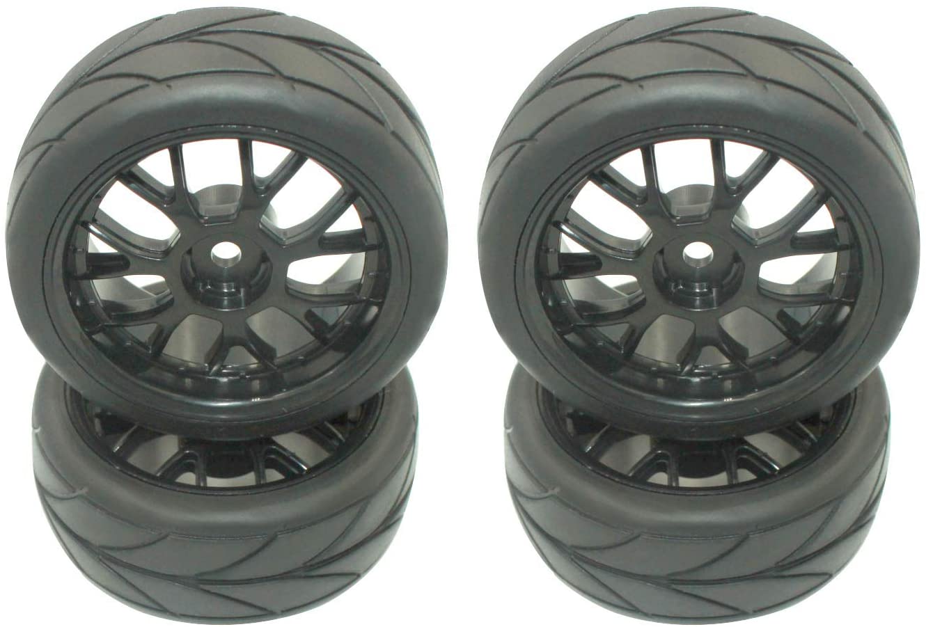 Features: Material: Tires-Rubber; Wheel Rim-Quality Plastic Tire Outside Diameter: 64 mm (2.52 in) Tire width: 26 mm (1.02 in) Accessories: 4x M4 Locknuts Hex Drive Hub: 12mm (Adapter Not Included) Rubber V-Tread Tires in Medium Grip Compound/Softness. NOT hard ‘drift’ tires. Compatible with: 1/10 Scale On Road Touring Car,such as Redcat, Hpi, Tamiya, Associated, HSP,ExceedRC,etc Also work on Traxxas 1/16 E-Revo If you have 12 mm Adapter, it may work on your 1/18 scale models Note:Do not fit Rally / Off Road Truck / Truggy / Buggy Package listing : 4 xTires + 4 pcs x Wheel + 4x M4 Locknuts