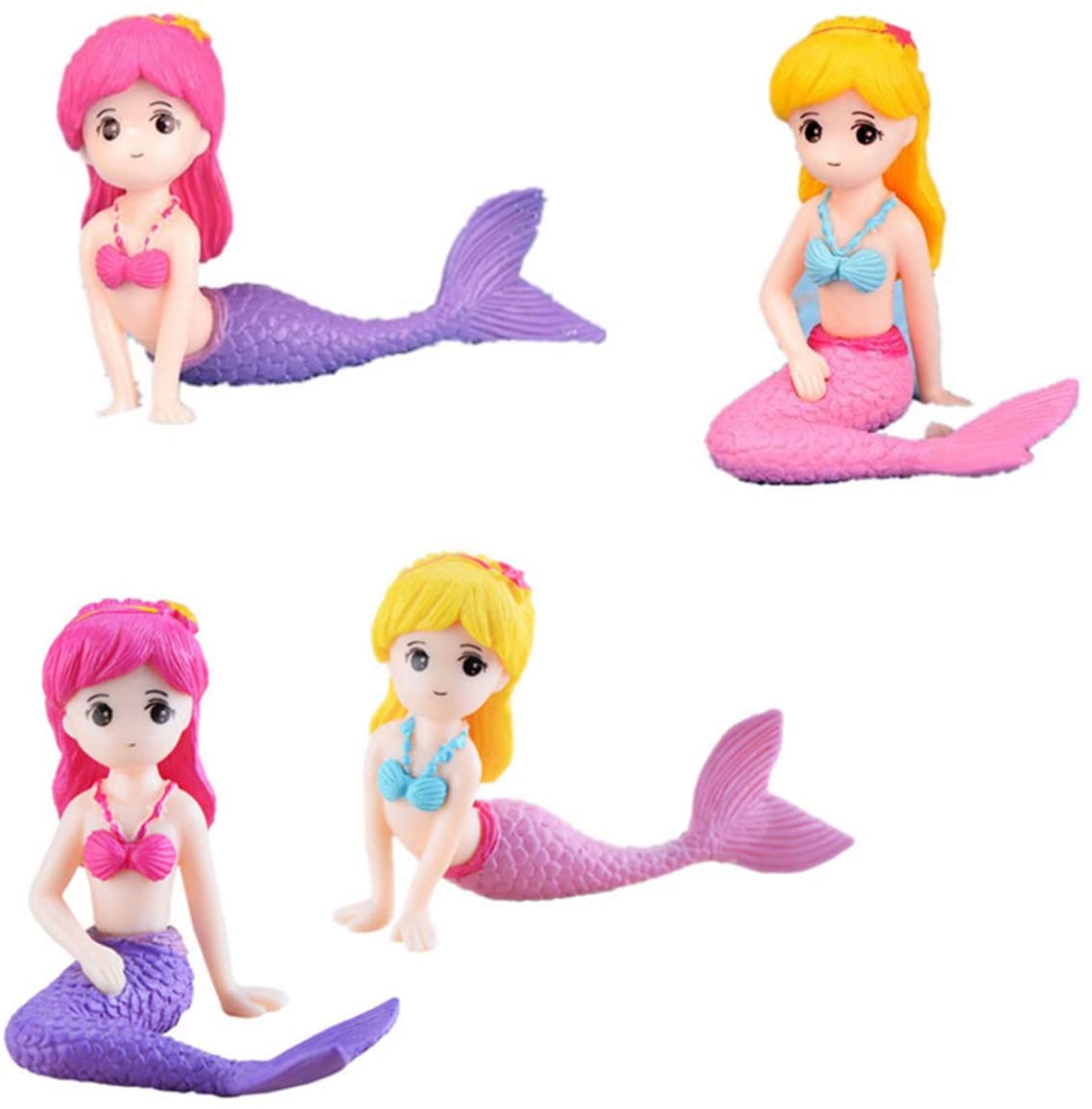 4 Pcs Miniature Mermaid Figurines, Mermaid Doll Cake Toppers, Mermaid Figure Collection Playset, Birthday Cake Decoration