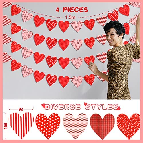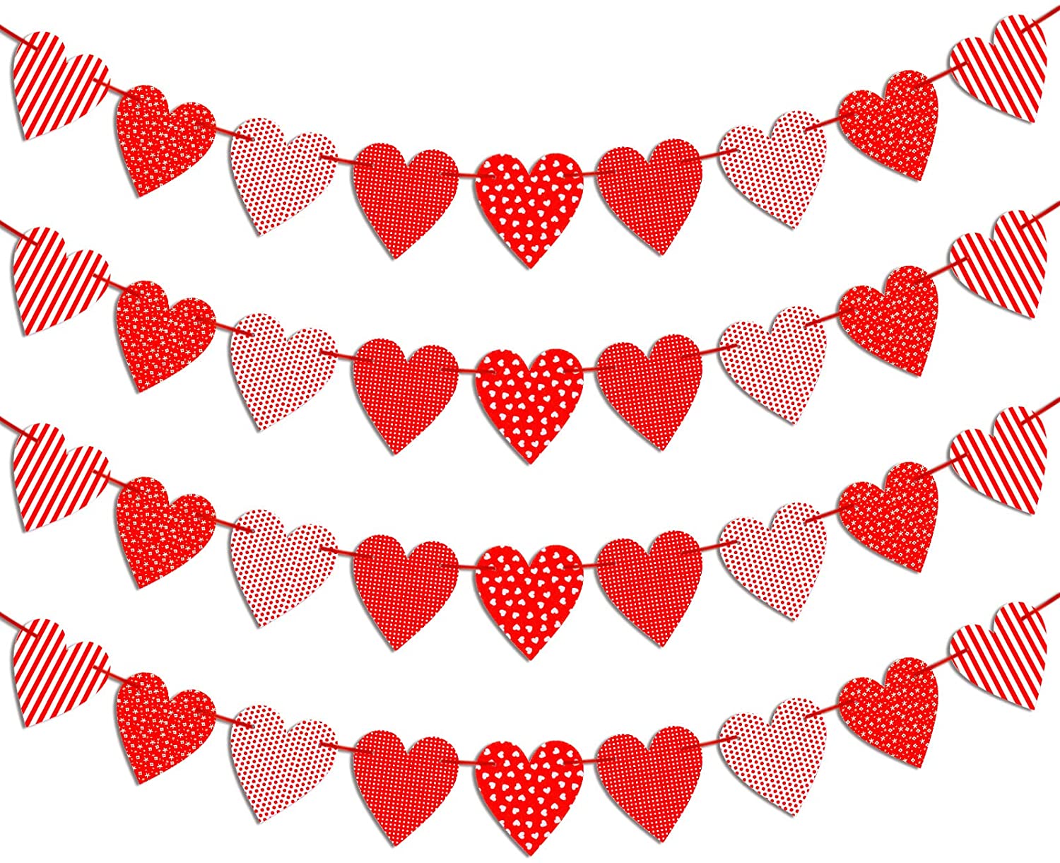 4 Pcs Valentines Day Heart Banners Valentines Heart Garland Decorations Felt Heart Garland Banner Hanging Valentines Garland Candy Hearts Banner NO DIY for Valentines Anniversary Party Supplies