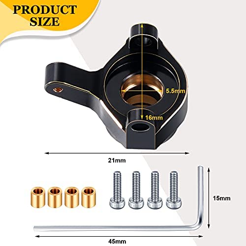 Features: Applicable models: Compatible with SCX24 AXI00002, SCX24 AXI00001, SCX24 AXI90081. Specifications: Brass steering knuckle size: 0.79 x 0.63 x 0.47 inches Color: as the pictures shown Material: brass Package includes: 2 x Brass steering knuckle 4 x Screws 4 x Bushing sleeve 1 x Small wrench 4 x Brass extended hex wheel hubs 4 x Pins 4 x Nuts Note: Please keep these small parts to prevent children from eating by mistake. Manual measurement, please allow slight errors on size. The colors may exist slight difference due to different screens. The mention of names and any related models above is only for purposes of demonstrating compatibility.