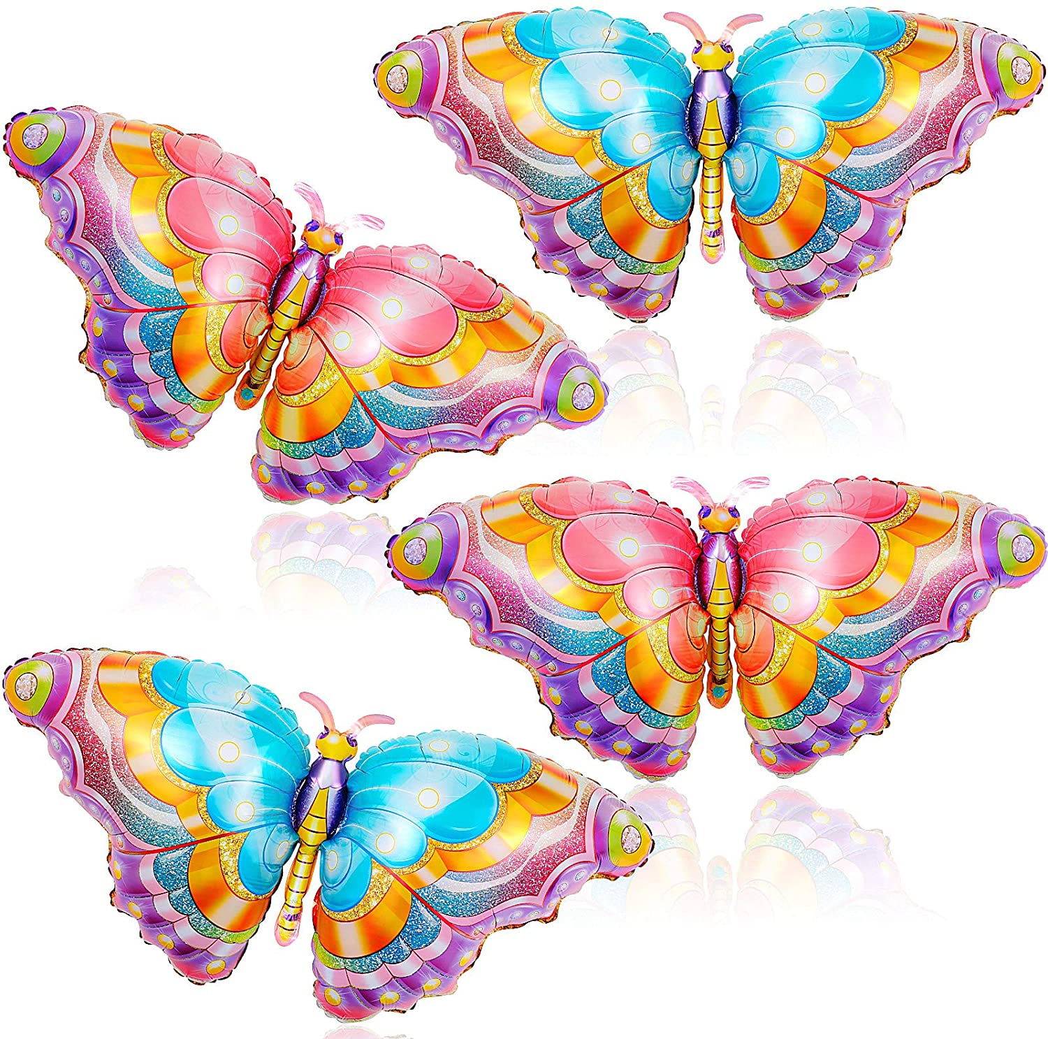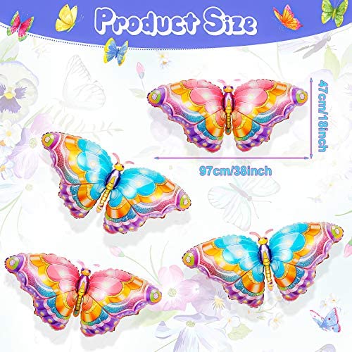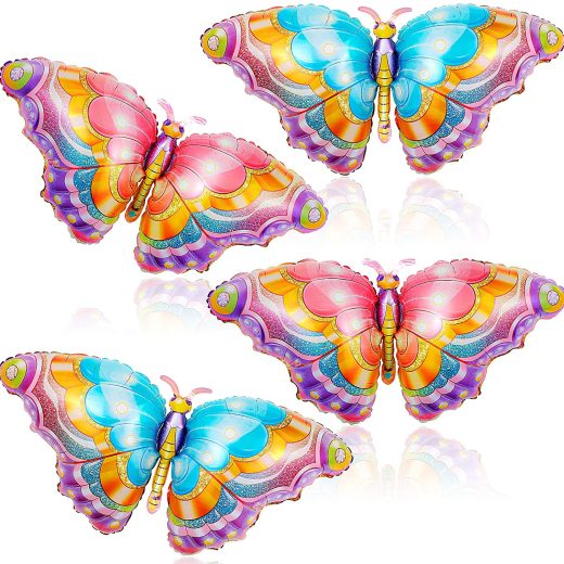 4 Pieces Butterfly Balloons Colorful Butterfly Aluminum Foil Balloons Butterfly Mylar Balloons for Butterfly Themed Party Baby Shower Decorations Wedding Birthday Party Supplies
