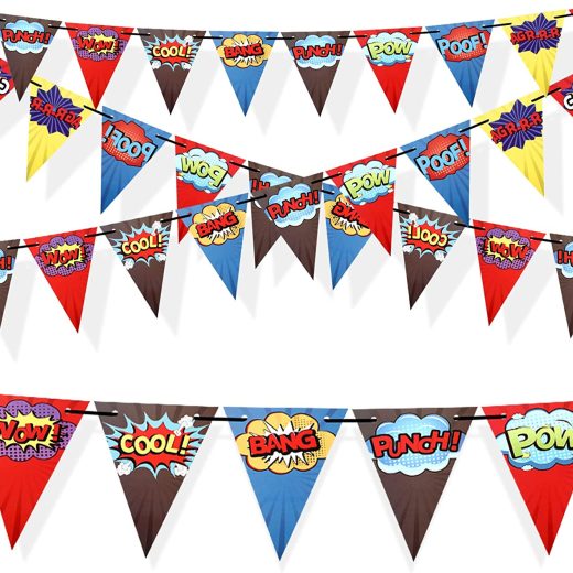 4 Pieces Hero Birthday Banner Hero Birthday Party Decorations Hero Paper Pennant Banner Garland Decor for Kids Boys Birthday Party Supplies Baby Shower Wall Decoration