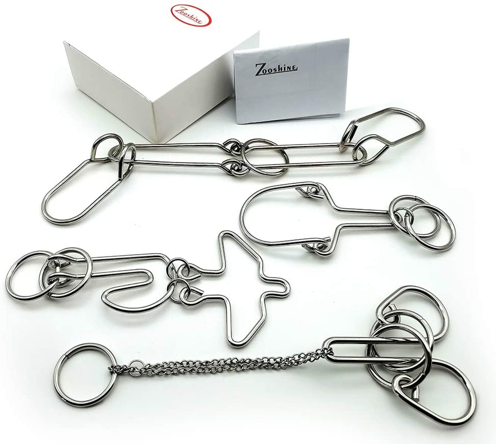 4 Sets Zooshine Advanced Metal Brain Teasers Puzzles for Kids Adults Metal Puzzle for Party,Office Relax Toys,Parent-Children Games