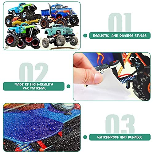 4 Sheets Monster Truck Wall Decals Glow in The Dark Monster Truck Stickers Large Car Wall Ceilings Stickers for Kids Boys and Girls Room Bedroom Home Decors, 4 Styles, 11 x 11.8 Inches