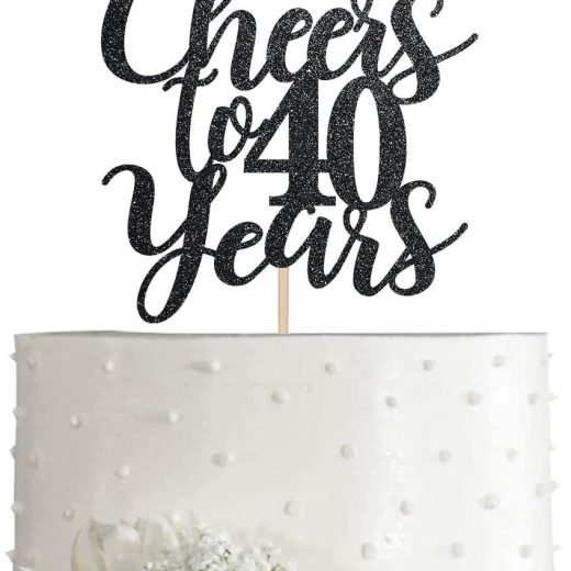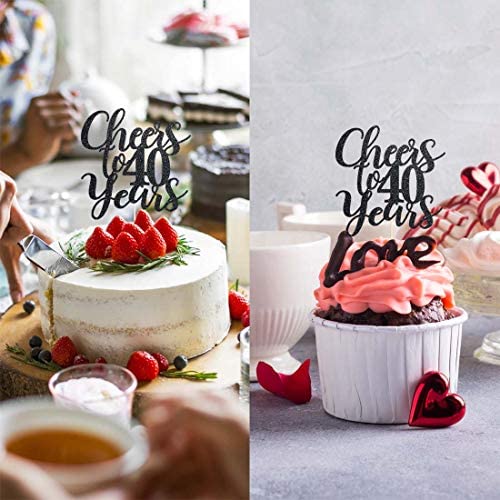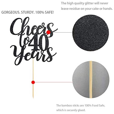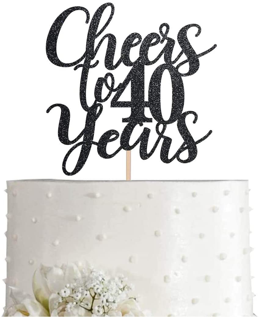 40 Black Glitter Happy 40th Birthday Cake Topper, Cheers to 40 Years Party Cake Topper Decorations, Supplies