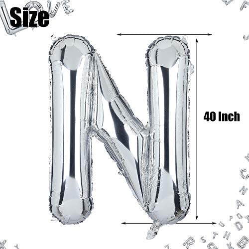 40 Inch Big Silver Letter Balloons Foil Mylar Wedding Bachelorette Wedding Birthday Bridal Shower Anniversary Celebration Graduation Party Decoration Alphabet N (A-Z)