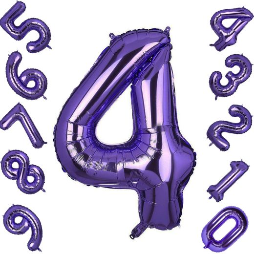 40 Inch Number Balloons Purple Number 4 Helium Foil Birthday Party Decorations Digit Balloons