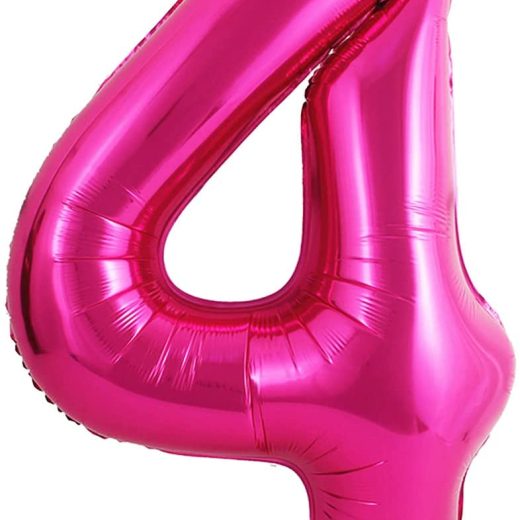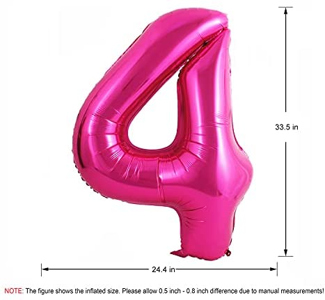 40 Inch Pink Large Numbers Balloons 4 Birthday Party Decorations Supplies Helium Foil Mylar Big Number Balloon Digital 0-9(Bright Pink number 4)