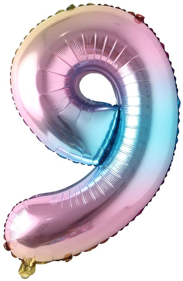 40 inch Rainbow Gradient Colorful Big Size Number Foil Helium Balloons Birthday Party Celebration Decoration Large globos (40 inch Rainbow 9)